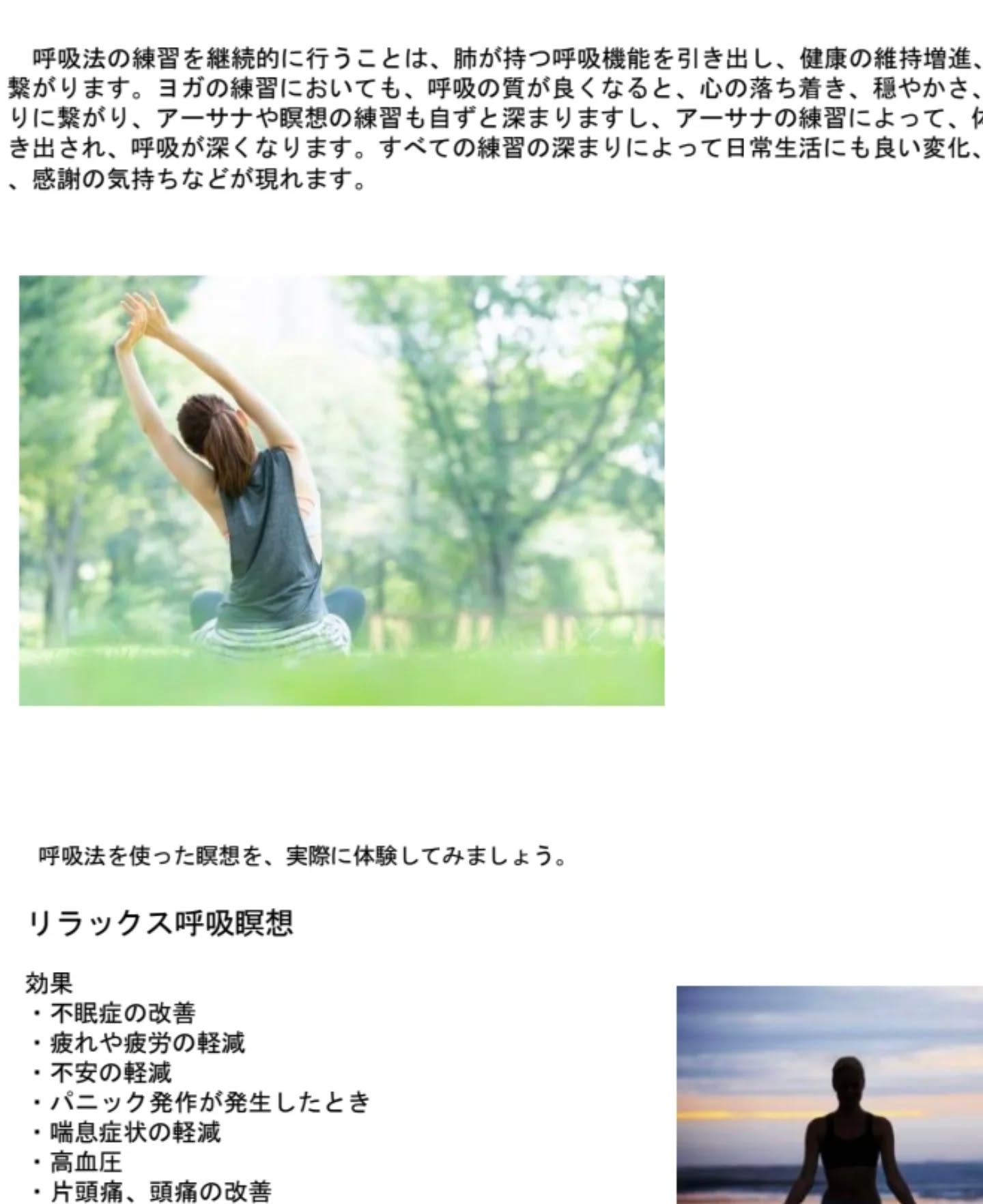 ・今回新たに、不眠やストレス軽減効果などの期待できる、呼吸法や瞑想法もいくつか添えました。