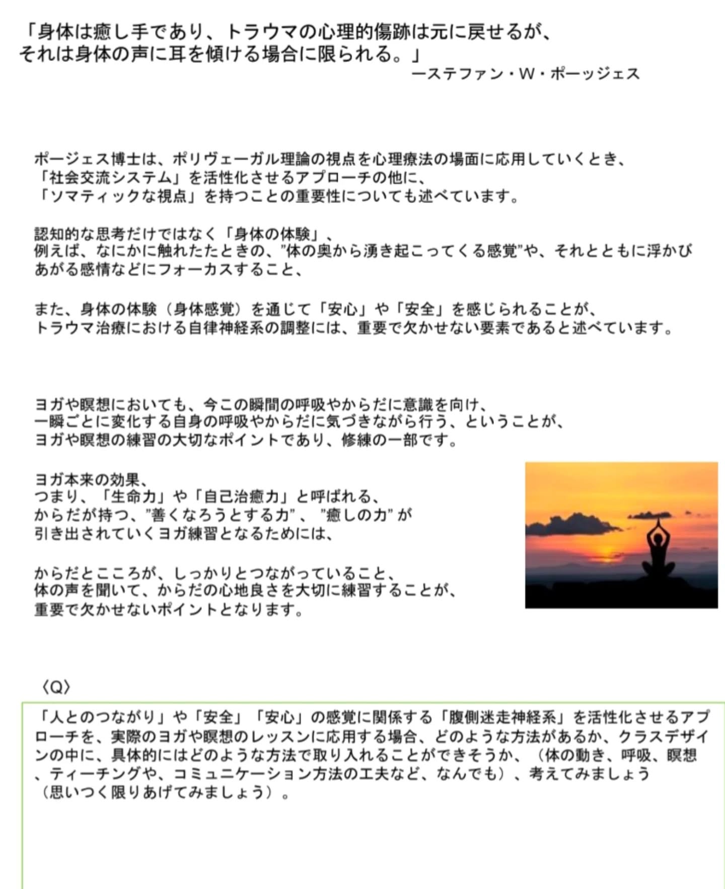 実際のヨガへの活用法を、具体例を入れながらまとめ、「ポリヴェーガル理論」が